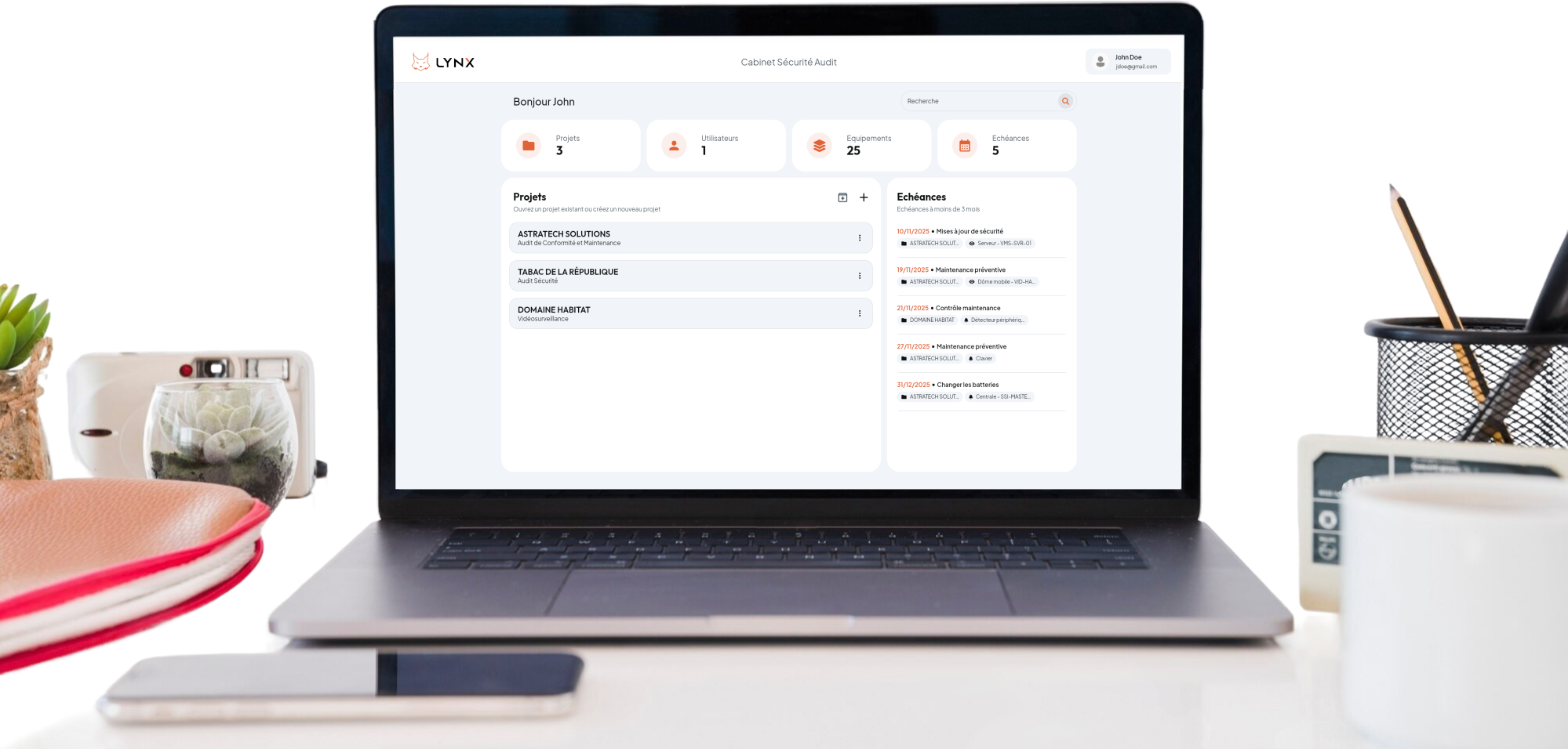 Que vous réalisiez des audits ponctuels ou des suivis réguliers, Lynx vous aide à structurer vos interventions, à gagner du temps sur le terrain et à produire des rapports clairs et complets.
